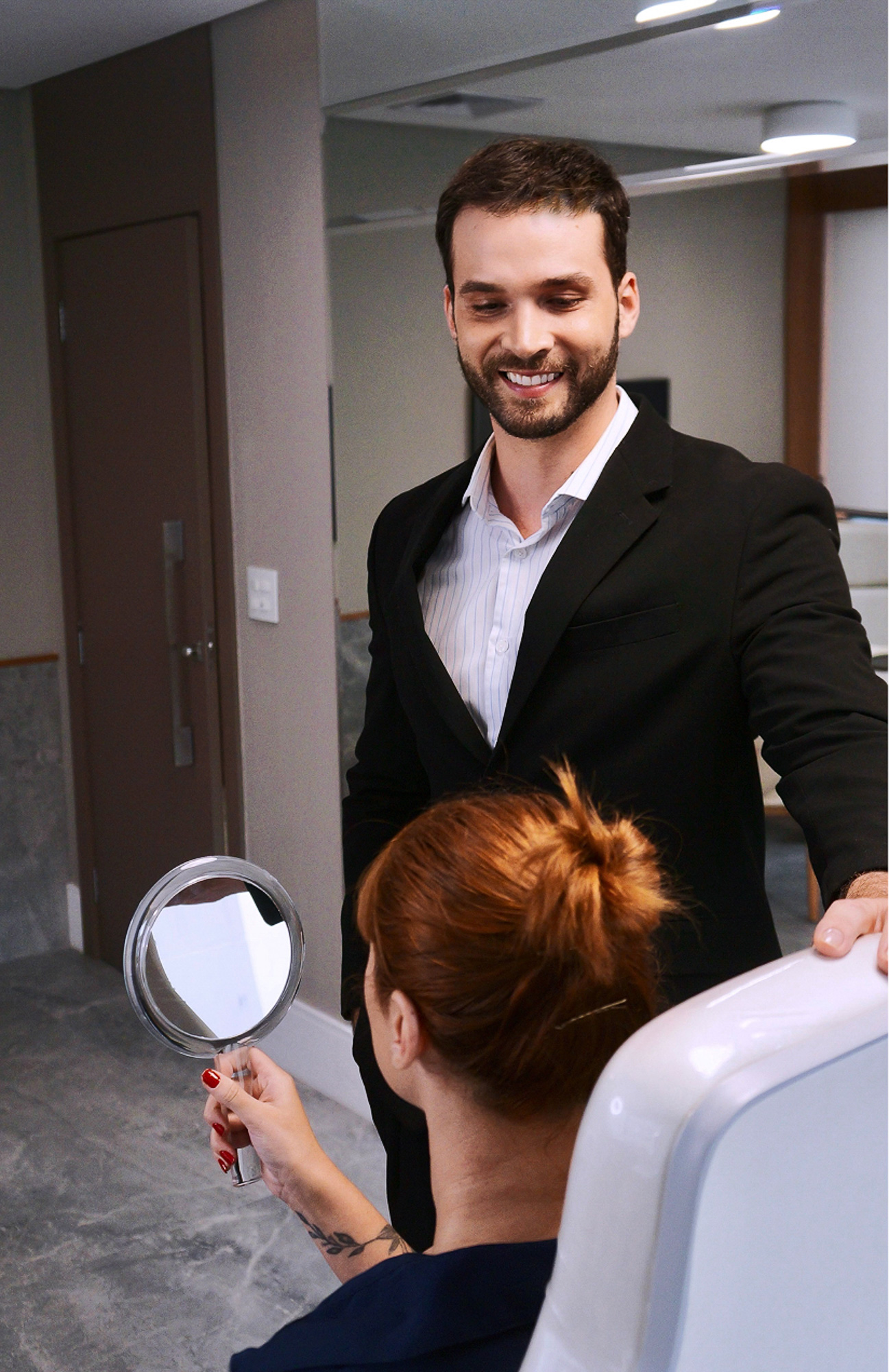 Essa trajetória me levou a buscar constante aprimoramento, e hoje faço minha especialização em Harmonização Orofacial e Estética Facial na USP, referência nacional em excelência acadêmica.